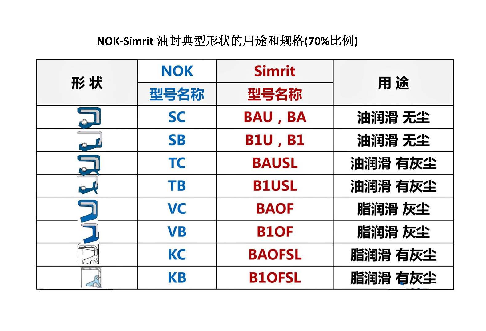 NOK-Simrit油封典型形狀的用途和規(guī)格(70%比例)