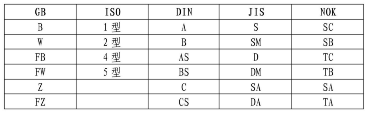 油封結(jié)構(gòu)標注各國標準對照表
